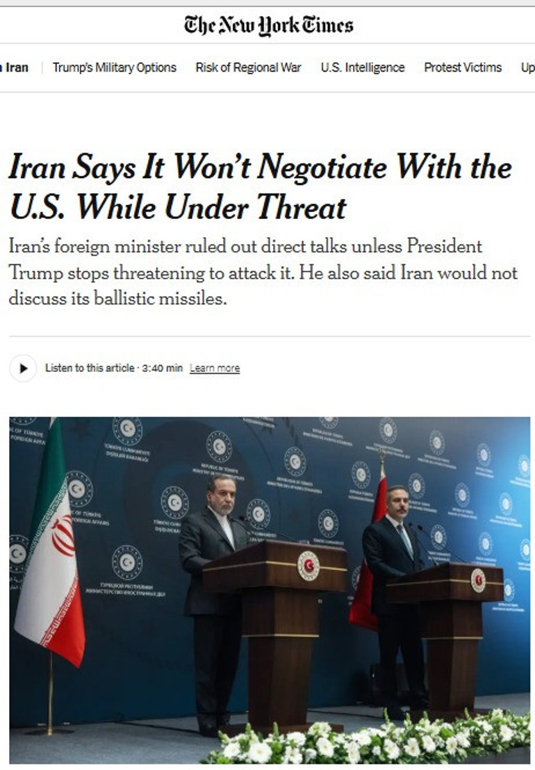 Haberde, İran Dışişleri Bakanı Abbas Arakçi’nin “tehditlerine son vermedikçe İran’ın ABD ile doğrudan müzakerelere girmeyeceğiz” sözleri aktarıldı.