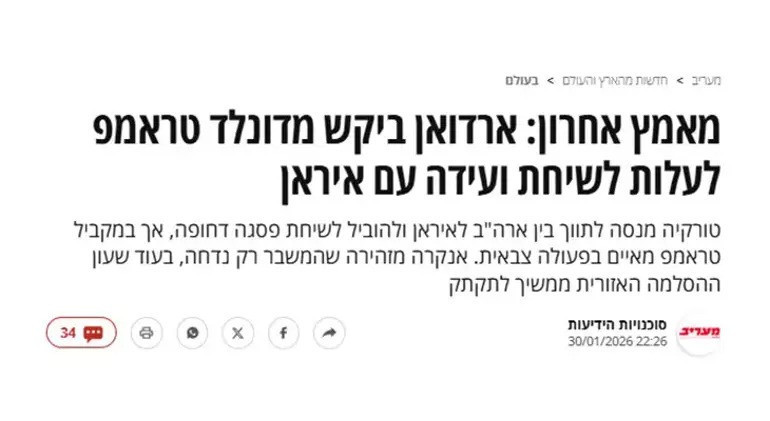 İsrail basınından Ynet, “Türkiye, İran ile ABD ortasındaki tansiyonda arabulucu” başlıklı haberinde şu değerlendirmeyi yaptı: